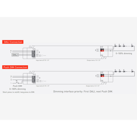 Denne LTECH 75W 24V DC LED driver er en alsidig og pålidelig strømforsyning designet til professionelle LED-belysningsløsninger. Driveren understøtter både DALI-dæmpning og Push DIM-funktion, hvilket giver maksimal fleksibilitet i styringen af dit lys.