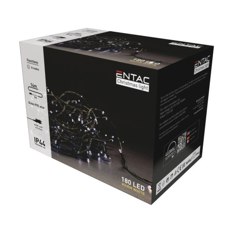 14 m. varm hvid LED julelyskæde 180 LED, memory funktion, IP44 udendørs, 230V