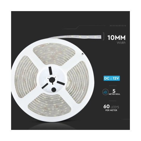 LED bånd, 24V, 60 Led/m, 9W/m, 3-4000K, 5m, IP65