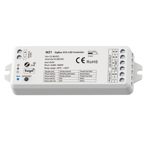 LED dimming controller RF 2.4GHz & Zigbee 3.0/Tuya. 2-kanals. 12V/24V/36V