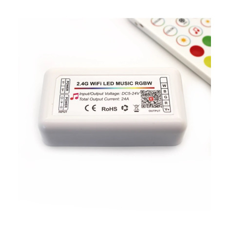RGB+WW Wifi controller med fjernbetjening Tuya/Smart Life, Google Home, Alexa og smartphones, 12V (288W), 24V (576W)